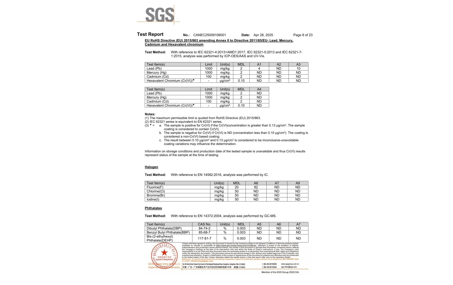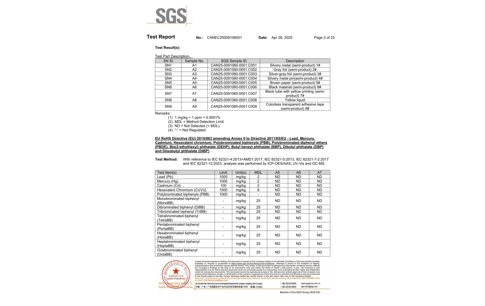 環保測試報告 ROHS+鹵素 CANEC25009106001